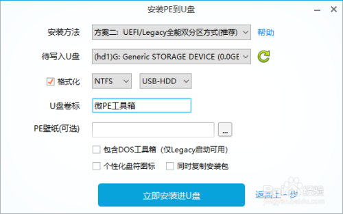 设置完参数之后,点击“当即安装进U盘”即可。稍等半晌,即可完当作。这pe建造东西不像其他的pe建造东西那样还会有演示。只要呈现“完当作”字样就是将pe建造进U盘了。