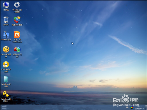 进入PE中的界面如下,等进度条走完之后,会呈现图二,这是微PE的桌面。