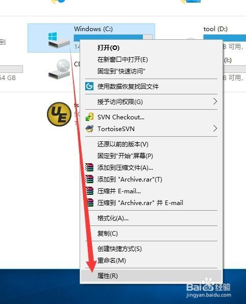 首先打开计较机C盘,然后点击C后点击鼠标右键,找到属性