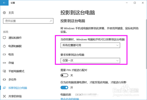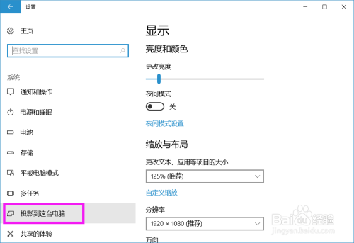 在左侧列表中点击 投影到这台电脑 项