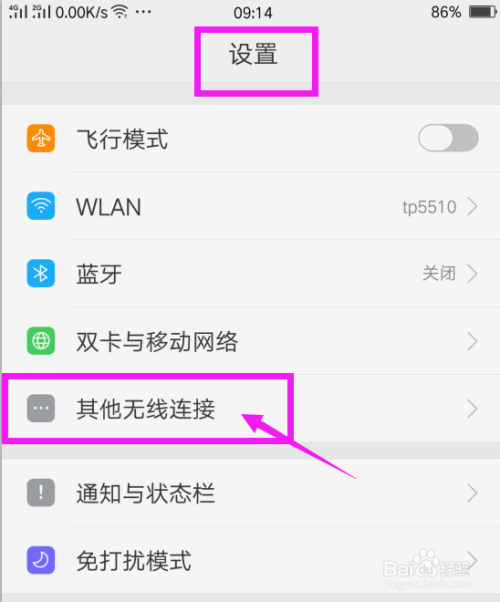 电脑设置好之后,设置手机。打开手机,进入设置界面,选择 其他无线设置