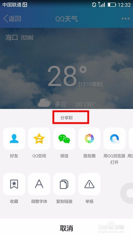 下面,我们就说说如许一种查看气候并分享气候的操作——分享QQ气候至QQ老友。