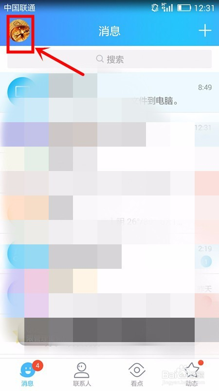 在打开的QQ首页中选择左上角头像;