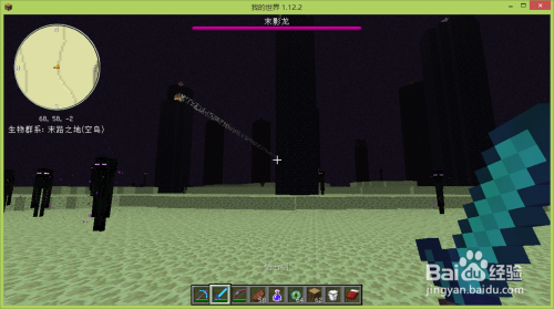 然后跳入激活的末地传送门就可以进入末地了,进入末地我们是传送到一个黑曜石平台上,需要搭方块然后才能到对面的末地中,下面就可以在末地屠龙啦。