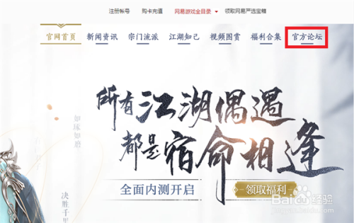 接下来就进入逆水寒的官方网站了,在上方的菜单栏中找到【官方论坛】并点击打开。
