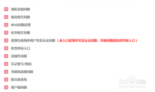 在客服专区界面中可以看到有游戏中的各类问题,我们可以点击查看本身碰到的问题。