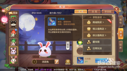 第三步,要洗炼宠物,就必需利用专属洗炼材料【幻灵露】,如下图。这个材料是【洗炼】宠物必不成少的材料,每洗炼一次,耗损一瓶。