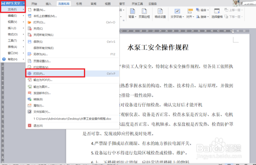 若是你只是想打印当作横标的目的的话,还可以在WPS页面上方点击”WPS文字“,然后点击”文件”找到“打印“,点击一下就可以进入打印页面啦。