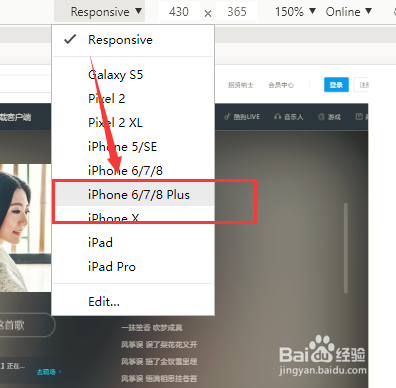 3. 点击左上角的【Responsive】,鄙人拉菜单中选择【iphone 6-7-8】等手机设置装备摆设都可以