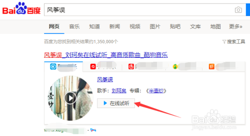 1. 打开百度首页,搜刮音乐,如图所示,点击【在线试听】