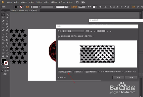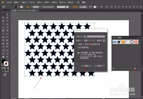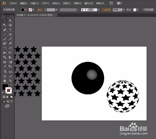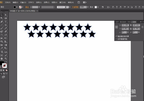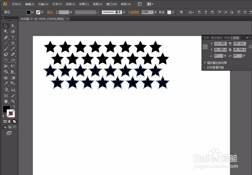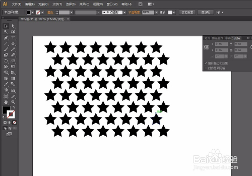 第二步:选择星形东西按住Shift键画出正星形调整大小,然后选择星形按住Shift+Alt键平行复制,再按Ctrl+d持续复制,复制好一行后,按照方式往下复制进行错位,操作如图: