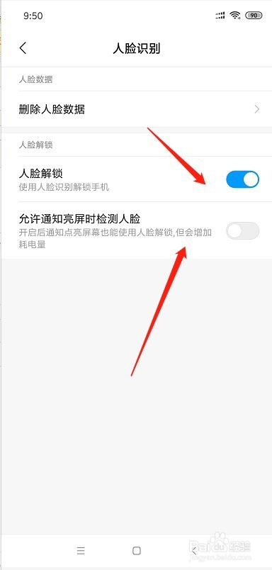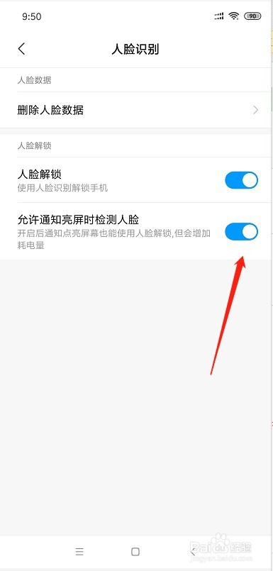 第五步:最后,我们可以启人脸识别功能中的通知亮屏后可以用人脸识别来解锁手机。