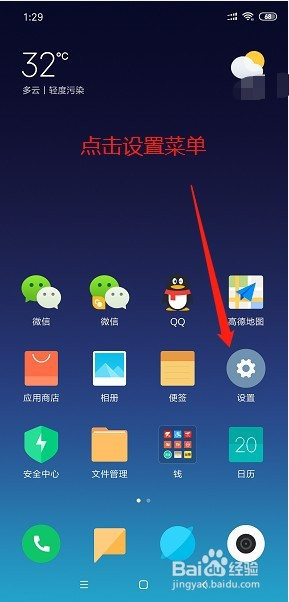第一步:首先呢,我们需要打开我们的小米手机,进入手机桌面后,我们选择设置选项。