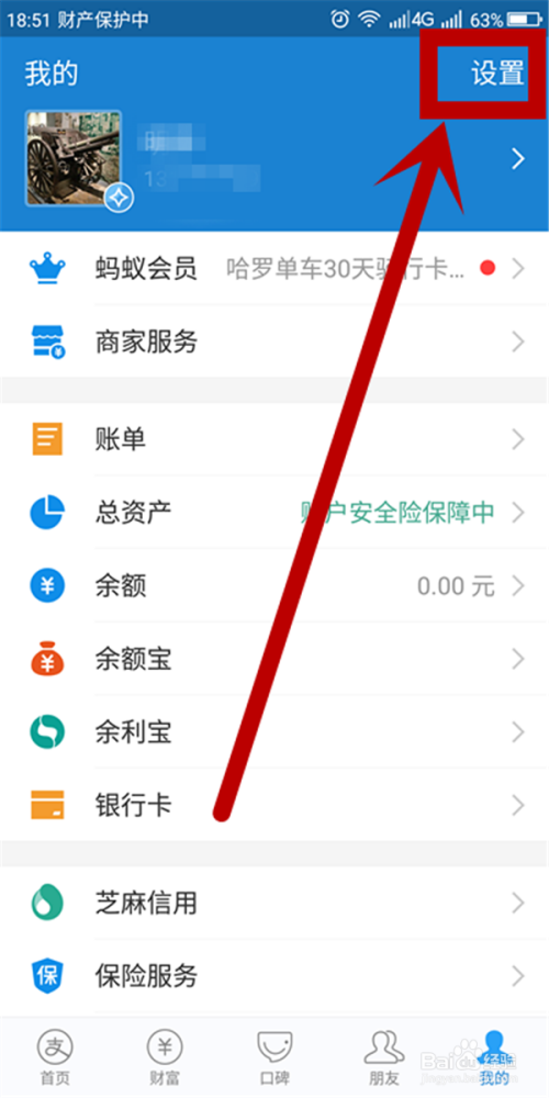 在“我的”页面右上角找到“设置”点击