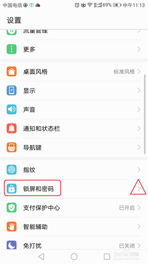 点击进入“设置”功能后,参照下图,找到“锁屏与密码”。