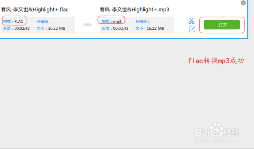 点窜当作mp3之后点击转换,当作功后会显示打开。