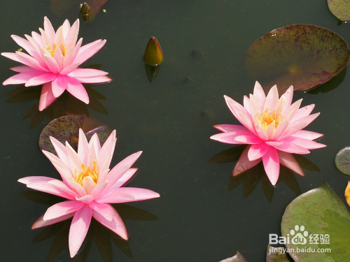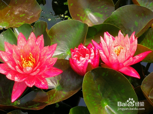对称构图,显示睡莲的魅力无限。中间对称,花朵集中,清楚而敞亮。