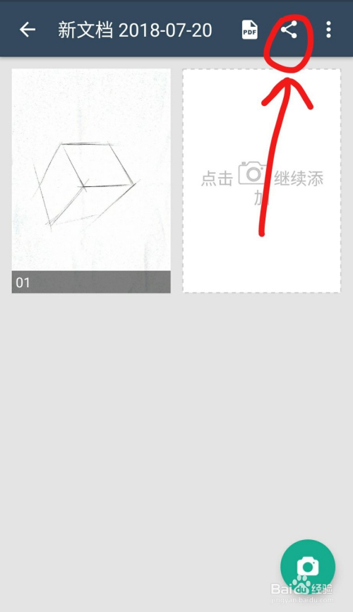 点击之后,我们会发现它和我们日常平凡用手机摄影的模式差不多,将稿件置于摄像头下,确定好位置之后按如下图所指引的摄像头的图标。