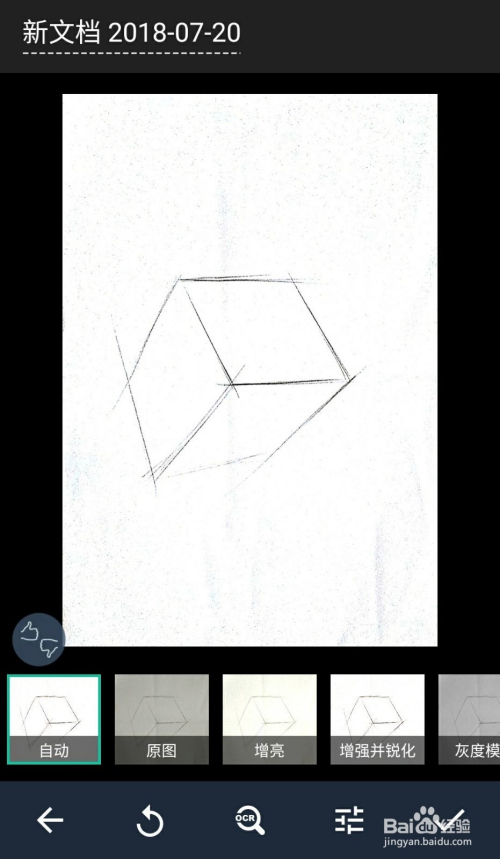 之后我们就可以看到,它的系统主动将你的手稿变为一个平面,而且加倍清楚,它的下方是几种选择模式,你可以进行选择并改换为你感觉最为合适的模式,之后按“对勾”进行保留。