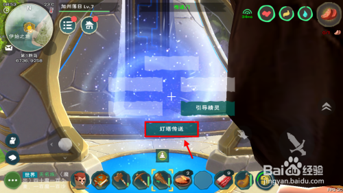 接近蓝色部门时屏幕上拾取键亮起,点击后选择“灯塔传送”。
