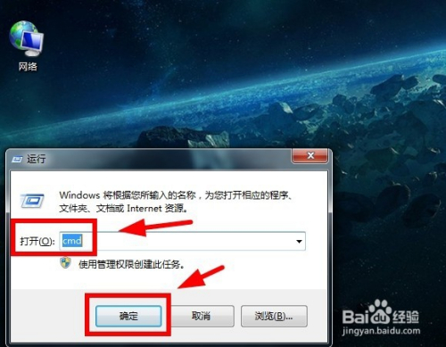 最后,按住键盘“Windows + R”键,在运行窗口输入“cmd”,进入号令提醒符中,点击“确定”
