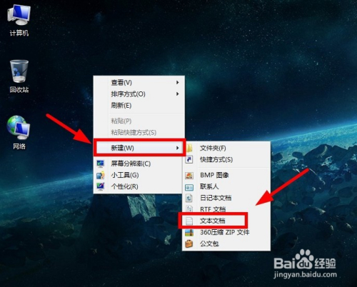 在你的电脑桌面,鼠标右键,点击“新建——文本文档”