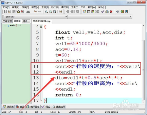 一辆汽车以65km/h的速度行驶,加快度的值为0.14m/s2,求1分钟后汽车的速度和行驶的距离,如何用C++实现呢?小编与大师分享一下本身的心得。
