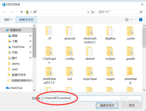 在打开文件夹对话框中,我们选择项目标路径文件夹,然后点击“选择文件夹”,如下图所示: