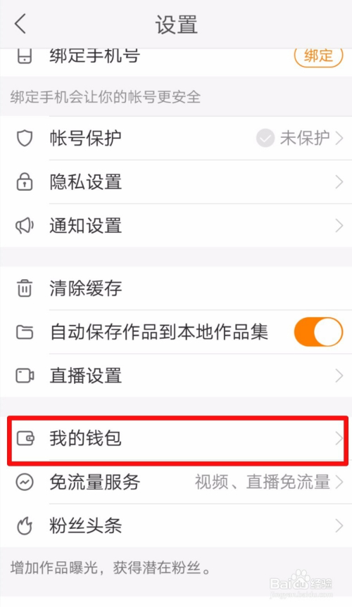 再接着,进入到【设置】页面之后,点击打开【我的钱包】,如图所示。