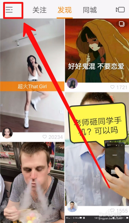 然后,进入到该应用软件的首页之后,点击左上角的三横小图标按钮,如图所示