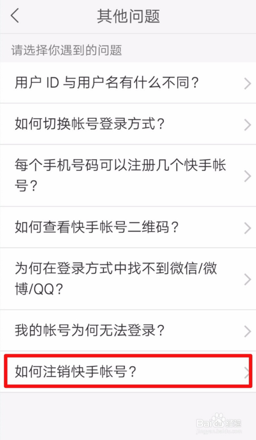 进入到【其他问题】页面之后,点击【如何刊出快手账号】。如图所示