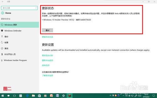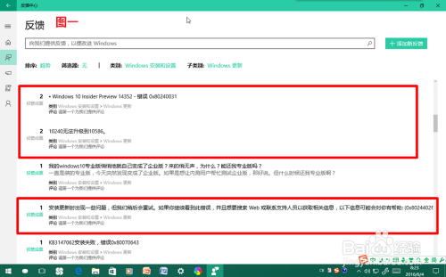 【备注:图一为win10下的反馈内容、图二为win10更新犯错截图】
