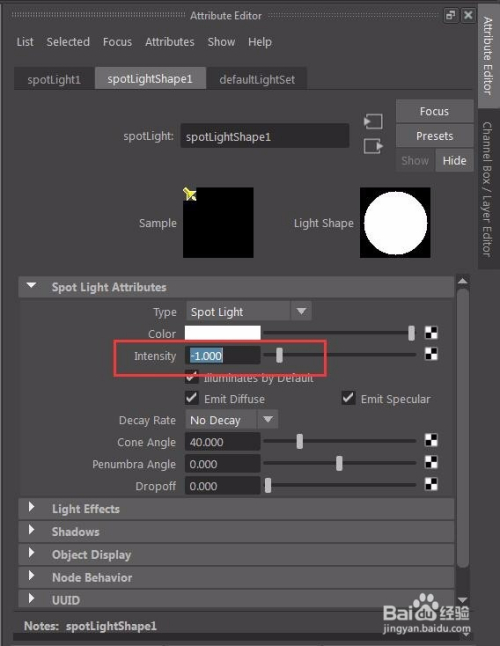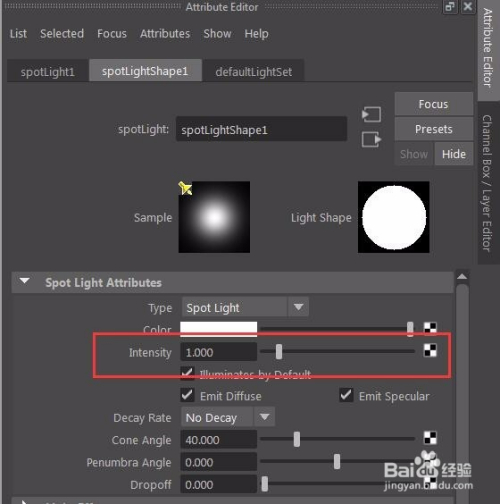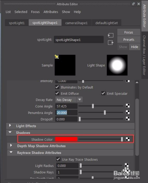 Maya中打光是很主要的,好比,进入灯光视角调节、灯光强度、灯工夫影等等。下面就介绍一下灯光的根基属性吧
