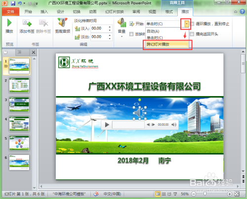 此时布景音乐已经插入到文档中,但默认环境下布景音乐只在当前幻灯片播放时播放,一旦切换到一下张幻灯片后布景音乐就会遏制。是以需要点窜。