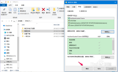 ❸恢复文件夹写入权限。