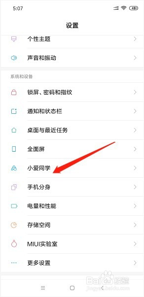 第二步:在设置界面中,我们找到:小爱同窗菜单,小爱同窗是小米最新的语音助手。