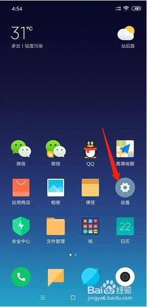 第一步:我们首先打开我们的小米8手机,然后在桌面处找到设置,点击进入设置界面。