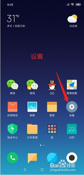第一步:首先大师需要打开你们的小米手机,在桌面找到设置按钮,点击进入设置列表。