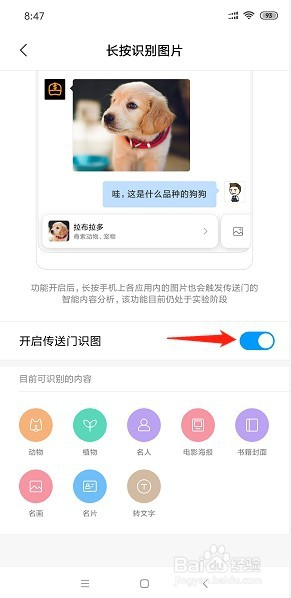 第六步:最后,我们开启完智能识图后,我们可以找一些图片长按进行识别操作。