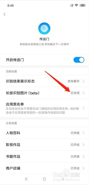 第五步:开启完传送门之后,我们就可以利用传送门的功能了,此中一个功能就是:只能识图功能,我们点击它进行开启。