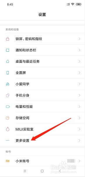 第二步:进入了设置列表之后呢,我们大师需要找到:更多设置 选项。
