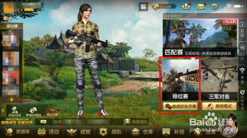 进入游戏首页界面,然后点击【排位赛】或【匹配赛】中的任一角逐模式,如图: