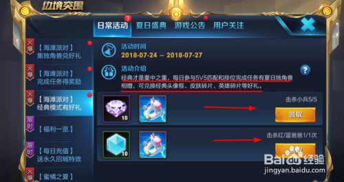 每日加入5v5金典对战也可以获得钻石、铭文碎片、夏季独角兽哦