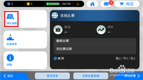 接下来的界面就是球队的一些状况,初始界面显示的是球员的整体评价,点击下方的按钮,如图所示。