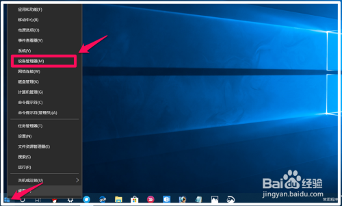 右键点击系统桌面左下角的【起头】,在右键菜单中点击【设备办理器】;