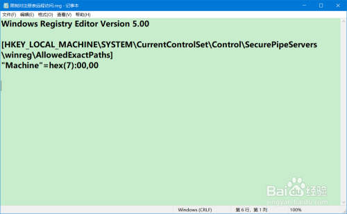 方式一:建造一个限制对注册表长途拜候的注册表文件,添加到注册表中,可限制Windows10系统注册表被长途拜候。