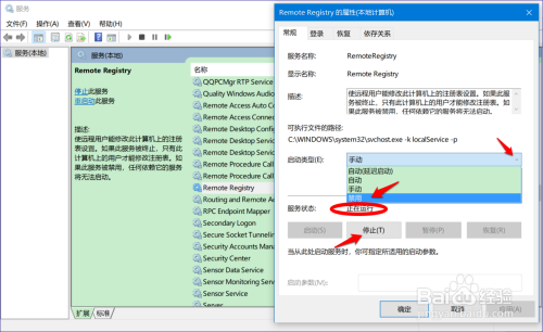 Remote Registry的办事状况为:正在运行