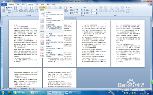 第一步:在Word2010中打开Word文档,光标插入第二页末从头至尾,单击“页面结构”选项卡,在“页码设置”组中单击“分隔符”按钮。