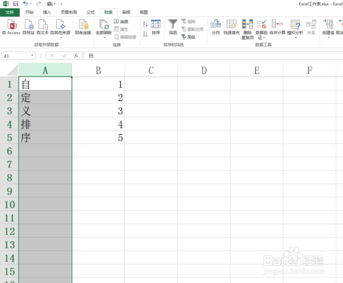 教程就以自界说排序五个词为排序关头词,数据如图所示。