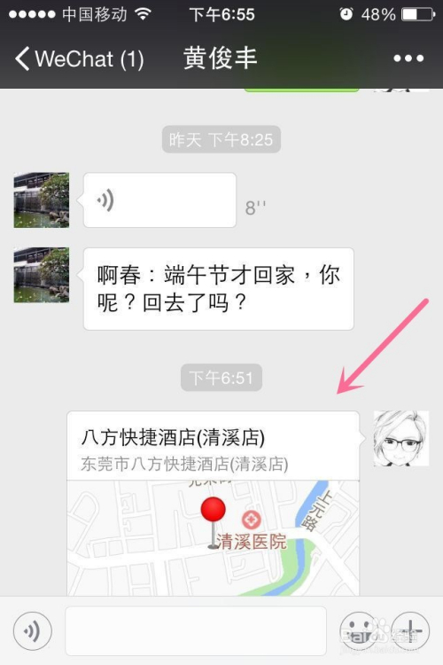 这个时辰,本身的位置便发给了对方,在聊天窗口里面,对方会看到,如下图所示。